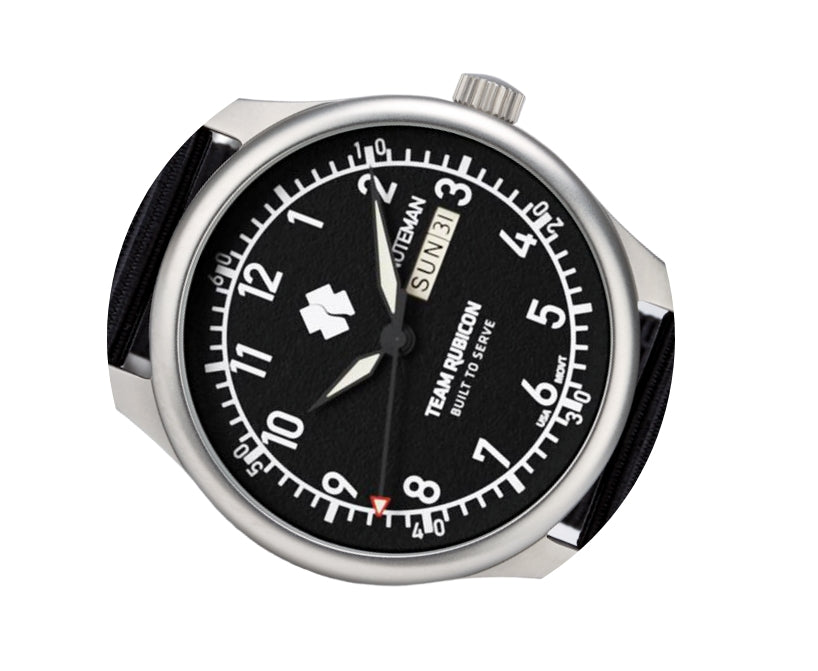The Team Rubicon A11 pays homage to the brave veterans who volunteer for Team Rubicon by including a monochromatic Team Rubicon logo on the watch face. In addition, a portion of each Team Rubicon A11 sold goes to support the Team Rubicon mission of serving vulnerable and at-risk populations affected by disasters.